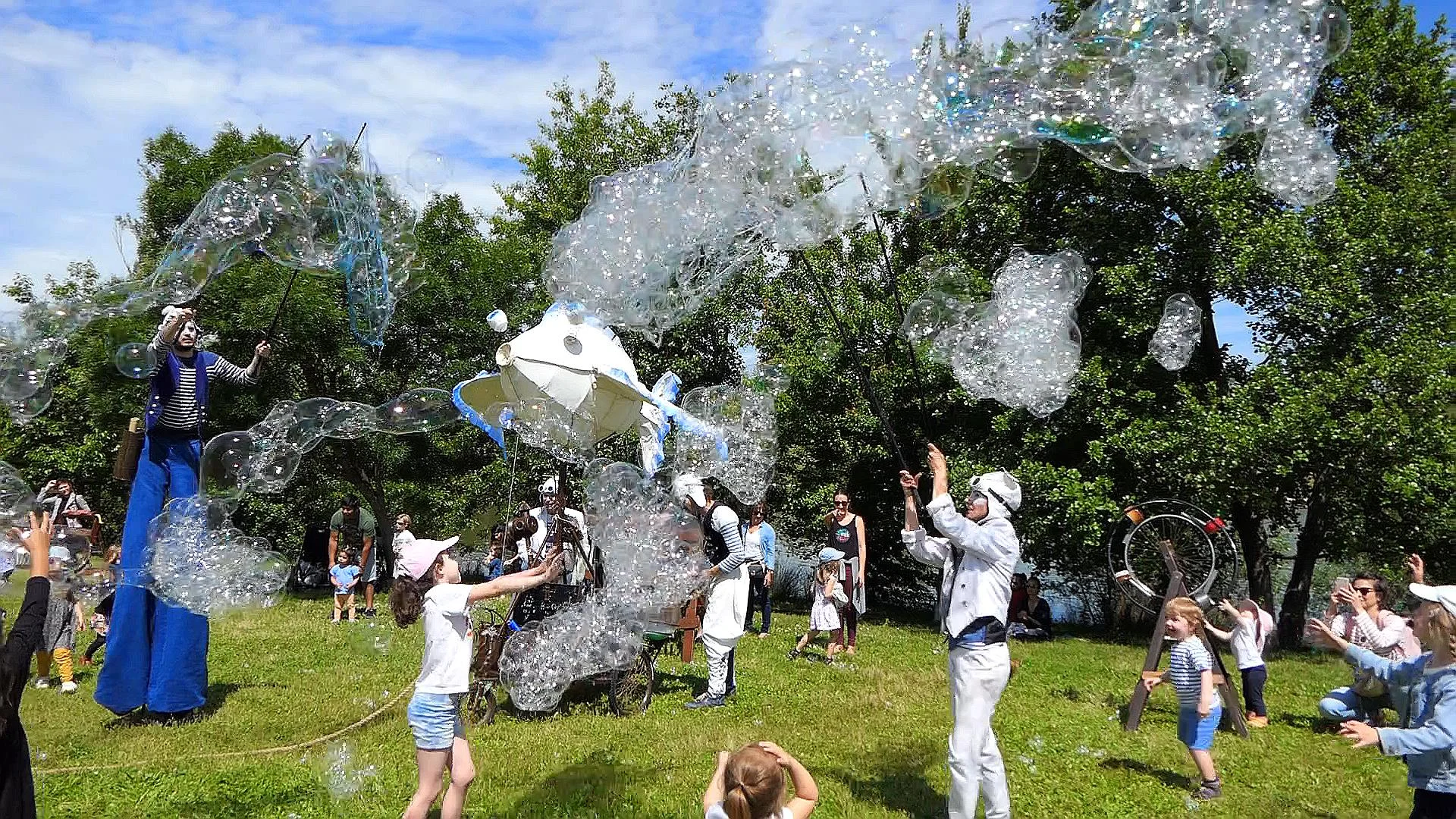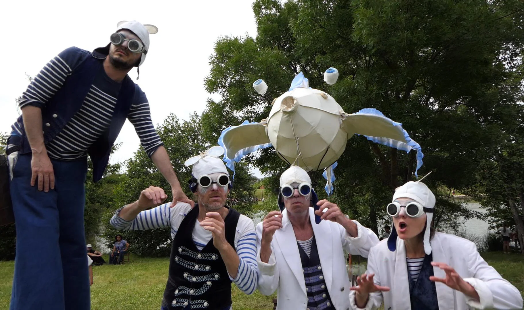 Tiren àncora per capturar els vents i després naveguen d'un illot a un altre. El públic segueix el seu viatge, interromput per una recerca dels vents quan s'aturen. És un moment de meravella amb les bombolles de sabó gegants volant pel carrer.